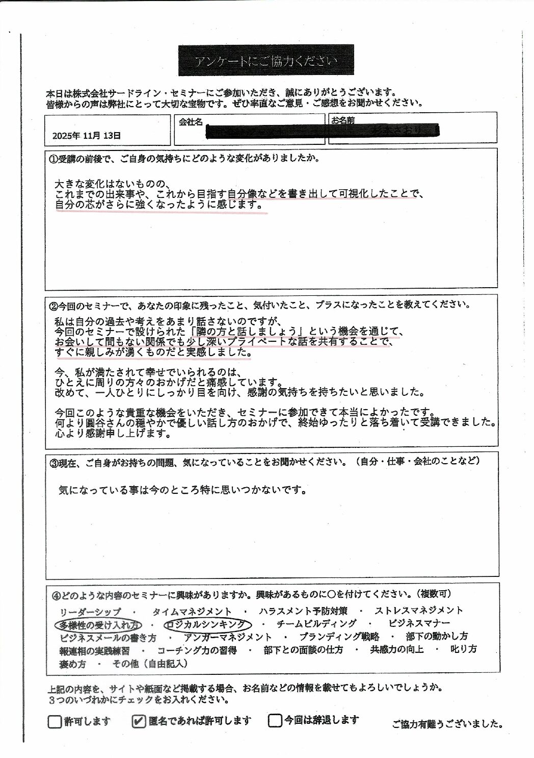 「リフレーミング研修」受講者アンケートをご紹介します(2)