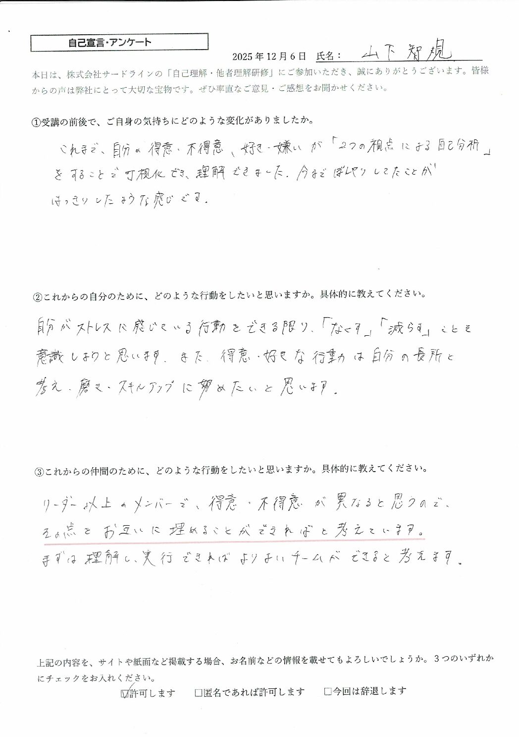 「自己理解・他者理解研修」受講者アンケートをご紹介します
