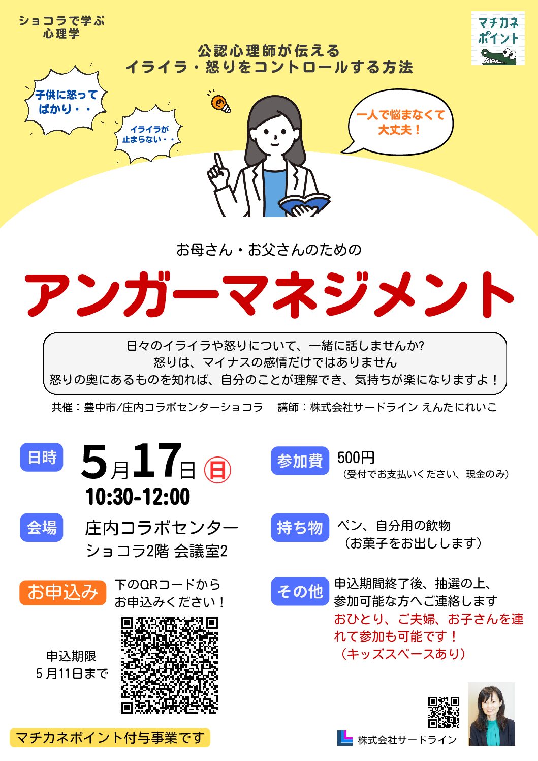 - 豊中市共催「お父さん・お母さんのための、アンガーマネジメント」開催のお知らせ